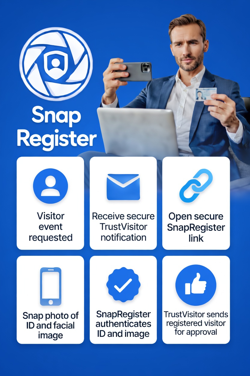 - Streamlines the visitor registration process and makes it self-service